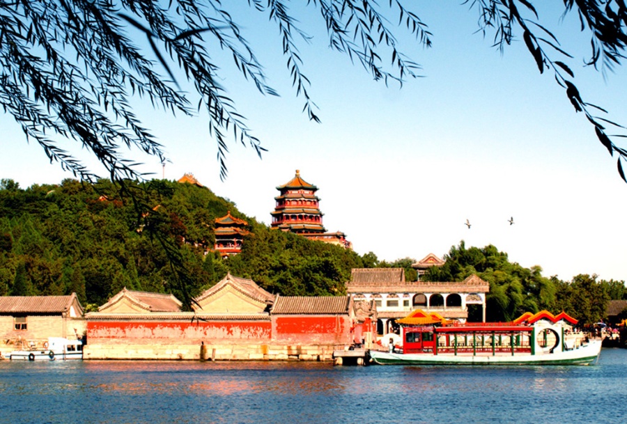 昆明湖一帶修建了金山行宮,將這里稱為金山、金山泊。到了元朝,有將這改名為翁山、翁山泊。而明代初期則改稱西湖并修建了園靜寺,命名為好山園。到了萬歷是十六年,也就是1588年,這里已經(jīng)具有一定的園林規(guī)模,享有“十里青山行畫里,雙飛白鳥似江南”的稱譽(yù)。然而讓這里真正成為一處皇家園林的是清代。在康熙年間就曾在此修建行宮,到了乾隆十四年到二十九年,也就是1749~1764年,就在原來的基礎(chǔ)上修建了清漪園,擴(kuò)湖,推山,將湖稱為