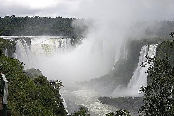 維多利亞瀑布大一些。懸崖邊有無(wú)數(shù)樹(shù)木叢生的巖石島嶼,使得伊瓜蘇河由此跌落是分為急流和泄瀑,高度不等,春冬季節(jié)瀑布流量較大,夏末和秋天流量較少,伊瓜蘇瀑布被列為世界文化遺產(chǎn)。發(fā)源于巴西境內(nèi)的伊瓜蘇河在匯入巴拉那河之前,水流漸緩,在