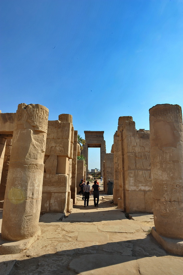 整個(gè)建筑群中,包括大小神殿20余座。院內(nèi)有高44米,寬131米的塔門。大柱廳寬102米,深53米,其中共有134根巨型石柱,氣勢(shì)宏偉,令人震撼。其中最大的12根高23米,周長(zhǎng)15米,其上足可容納50個(gè)人站立。晚上有聲光表演,用五彩的燈光變幻映照著遺址,配有解說(shuō)詞和音樂(lè),向游客敘述古埃及人民的生活情景。阿蒙神廟位于盧克索鎮(zhèn)北4公里處,是卡爾納克神廟的主體部分,這里供奉的是底比斯主神——太陽(yáng)神阿蒙,始建于三千多年前的十七王朝,在此后的一千三百多年不斷增修擴(kuò)建,共有十座巍峨的門樓、三座雄偉的大殿。
