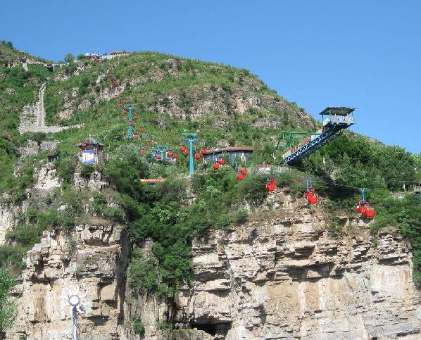 十渡景區(qū)山奇水秀,谷壁峭立,峰林疊翠、石美潭深、景致幽勝,眾譽“青山野渡、百里畫廊”。十渡負(fù)氧離子含量極高,每CM3達7000-10000個,素有“自然空調(diào)、天然氧倉”之稱。經(jīng)過近幾年的開發(fā)建設(shè),已基本形成吃、住、行、游、購、娛相配套的格局,年接待游客數(shù)百萬人次以上。全鎮(zhèn)共有48家大型賓館、培訓(xùn)中心,日接待能力達2萬人。景區(qū)內(nèi)有蹦極、攀巖等36個旅游項目。