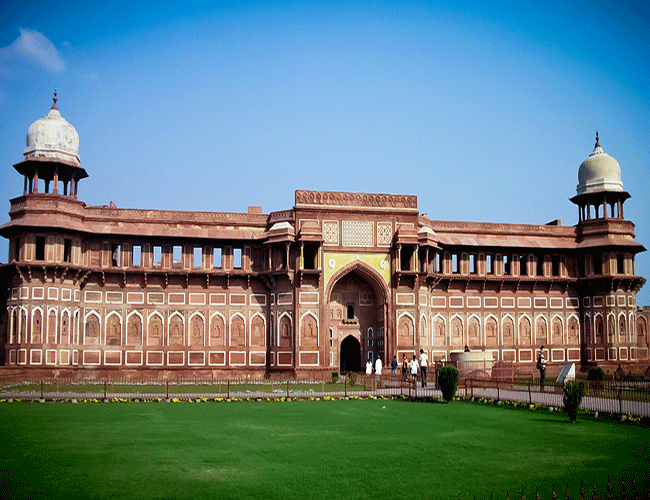 大理石拼花鑲嵌技術(shù),變成阿格拉傳統(tǒng)手工藝主流。阿格拉堡位于亞穆納河畔的小山丘上,距泰姬陵約15公里,全部采用紅砂巖建造而成,故又稱(chēng)紅堡,與首都德里的紅堡齊名。這座方圓1.5平方公里的宮堡,外形非常雄偉壯觀,城內(nèi)的宮殿,雖經(jīng)歷漫長(zhǎng)的歲月,多已失修,但畫(huà)梁和墻壁上精巧的雕刻與設(shè)計(jì),仍隱約保存著昔日富麗堂皇的風(fēng)貌。