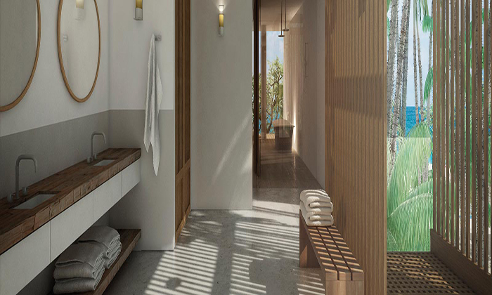 夢想的建筑,將馬爾代夫的陽光、碧海和藍(lán)天完美融合成永恒迷人的風(fēng)景線。每間臥室望出去都是醉人的馬爾代夫景色。內(nèi)飾為褐色和奶油色的黃褐色色調(diào),配以定制的木門和木窗,布置風(fēng)格簡潔而整齊。其設(shè)計直接、線條時髦且極富現(xiàn)代感,以炫酷的木質(zhì)甲板為基礎(chǔ),與精心修飾的熱帶風(fēng)格形成完美搭配。