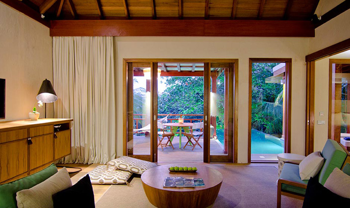 對于那些從未厭倦海洋生物的人們來說,漂亮的海洋珊瑚礁房屋可謂天作之合。房屋精妙地坐落于珊瑚礁的邊緣,可直接通達(dá)大海,其特色還包括令人不可思議的寬敞露臺和專屬于您個人的淡水泳池。現(xiàn)代、時髦的房屋有 250 平米,內(nèi)設(shè)空調(diào),房內(nèi)配備 42 英寸平板電視和衛(wèi)星頻道,單獨的室內(nèi)起居室配有沙發(fā)和工作臺,此外還有一個迷你酒吧,室內(nèi)和露天淋浴以及一個帶浴缸的浴室。