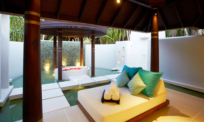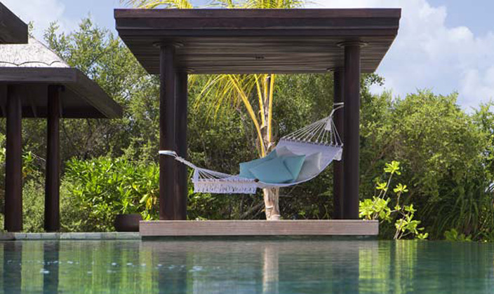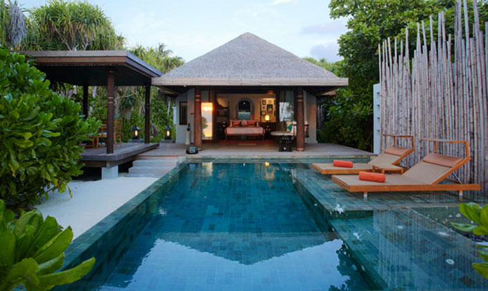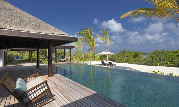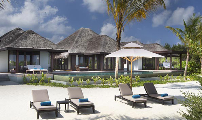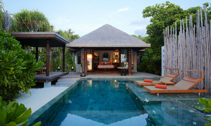 兩個主臥室別墅與中央別墅分隔而立,都擁有半露天浴室,沉入式浴缸周圍環(huán)繞著水塘、瀑布和戶外雨林式花灑。 第二棟宅邸擁有第三個主臥室,配有私家泳池和用餐亭、同樣寬敞的浴室和一個私家入口。每棟宅邸的客人共享大片的熱帶花園,以及按摩亭和設(shè)有水煙休息區(qū)的海灘小屋,更有私人管家24小時貼心服務。