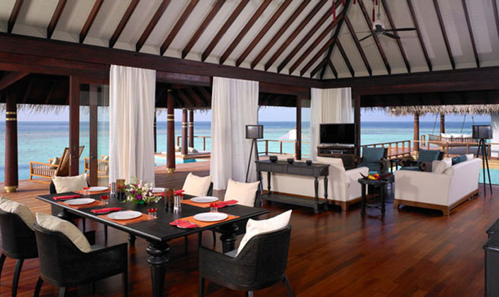 水上泳池別墅建在水上。 房間寬敞明亮,灑滿了五顏六色的鮮花,散發(fā)著陣陣的熱帶清香。 蓋著埃及棉布,枕著個性化的枕頭,酣然入夢。由條紋木材搭成,配有挑高的天花板和硬木地板。 這些超大別墅配有男女獨立步入式衣柜、冰酒器、私人泳池和陽光甲板,可以俯瞰一望無際的大海,營造一種無與倫比的水上豪華體驗。 259平方米的寬敞空間,讓您感覺仿佛與大海連成一體。