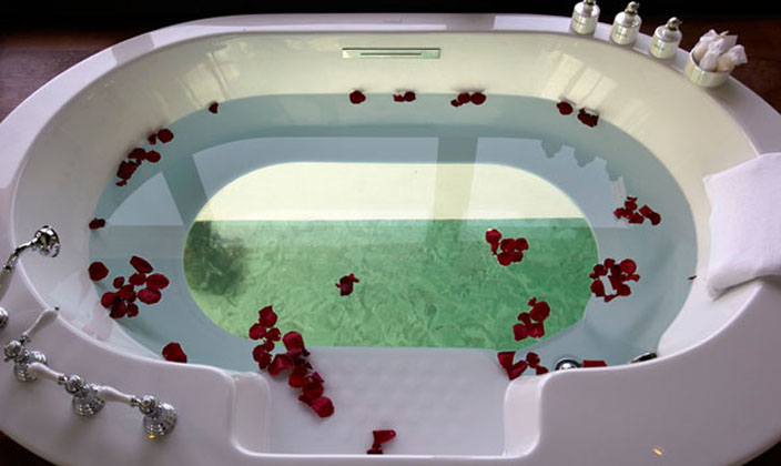 ★水屋把搖籃椅,網(wǎng)床,泳池,玻璃地板這幾個女士大愛的元素集全了,還多了一個讓人眼前一亮的玻璃底浴缸,如果這還不夠,一個水下餐廳也許可以打動你;