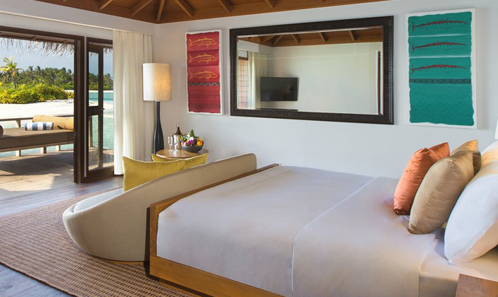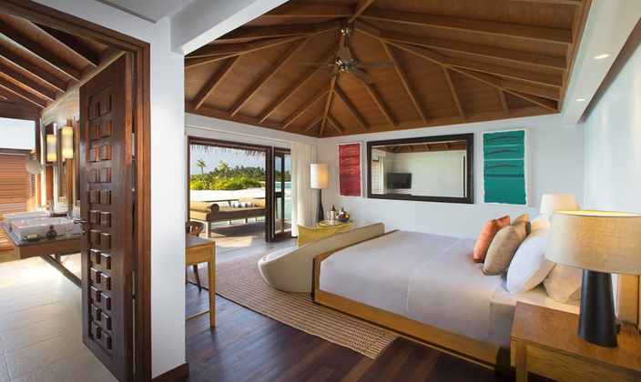 馬爾代夫薇莉島安納塔拉的62平方米水上度假小屋坐落于原始熱帶天堂之中,配有硬木地板和椰葉屋頂和時(shí)尚的現(xiàn)代內(nèi)飾。床上鋪著當(dāng)?shù)丶徔?..查看更多