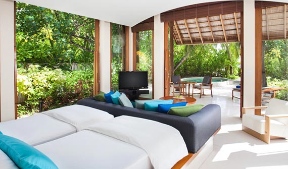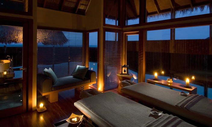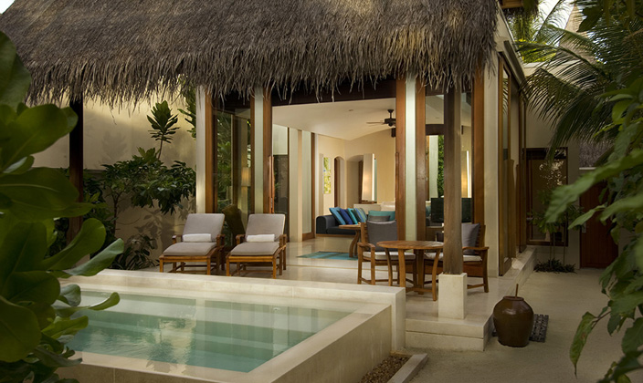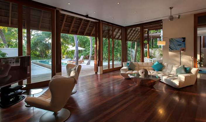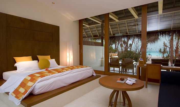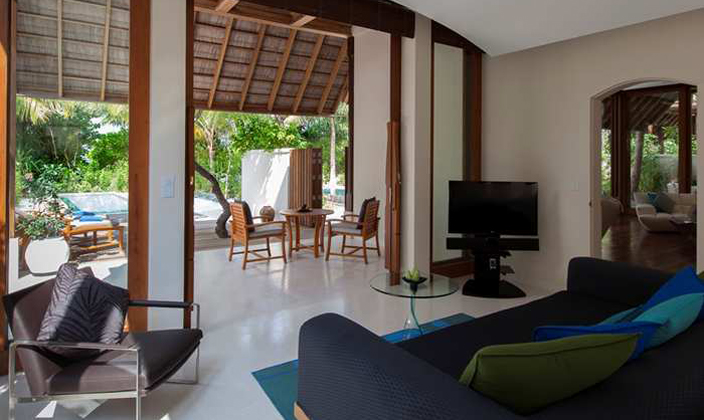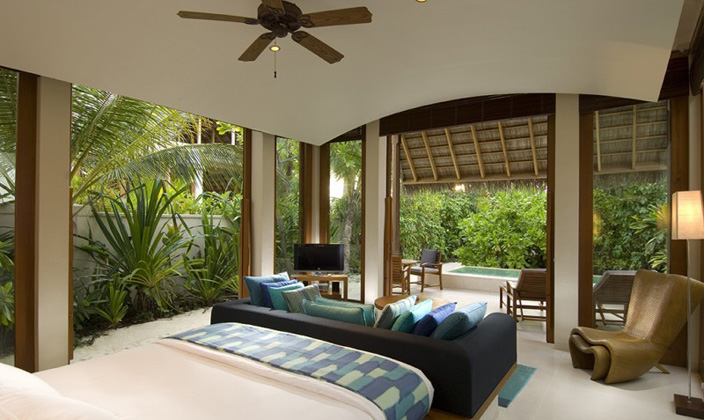 別墅圍繞著Spa Retreat水療區(qū)(酒店三大水療中心之一)而建,每間別墅內(nèi)設的專屬獨立水療護理室內(nèi)均配有兩張按摩床、迷你健身房及健身球等設施。 寬敞的空間設計與淡入淡出的馬爾代夫現(xiàn)代風格和諧而統(tǒng)一,淳樸木質(zhì)內(nèi)飾、茅草屋頂,房中隨處都可飽覽無敵海景,讓賓客時刻擁有與自然融為一體之感。
