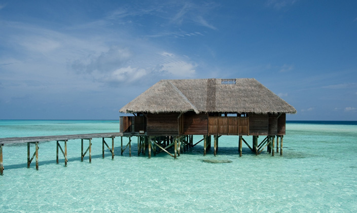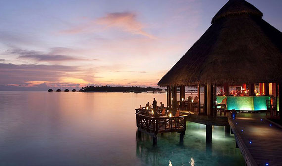 希爾頓集團旗下奢華六星酒店,水飛或內(nèi)陸飛機均可上島,房型多且寬敞,大多有私人泳池,設施完備奢華,SPA頂級。島上擁有潛水中心、水上活動中心、健身中心、露天電影院和一架雙人潛水艇。