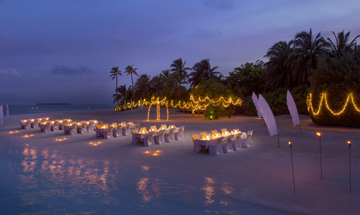 美食特色:雞尾酒、點心。餐廳介紹:為了極致浪漫的用餐體驗,請在星空下的海灘上預訂兩張私人晚餐。您自己的私人廚師將在最浪漫的環(huán)境中準備由您自己的服務員提供的美食誘惑。從“海難”風格的餐飲選擇,您坐在沙發(fā)上舒適的地毯上放置一個更傳統(tǒng)的燭臺晚餐,桌子上面放著星星,微風吹過棕櫚樹。請注意,酒店需要預訂。