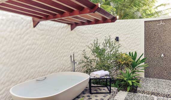 海灘別墅隱藏在海岸上,郁郁蔥蔥的植被確保隱居和客人間的隱私,確保了游客們的隱私。所有的海灘別墅可直通沙灘和欣賞晶瑩剔透的水之外的景觀。
