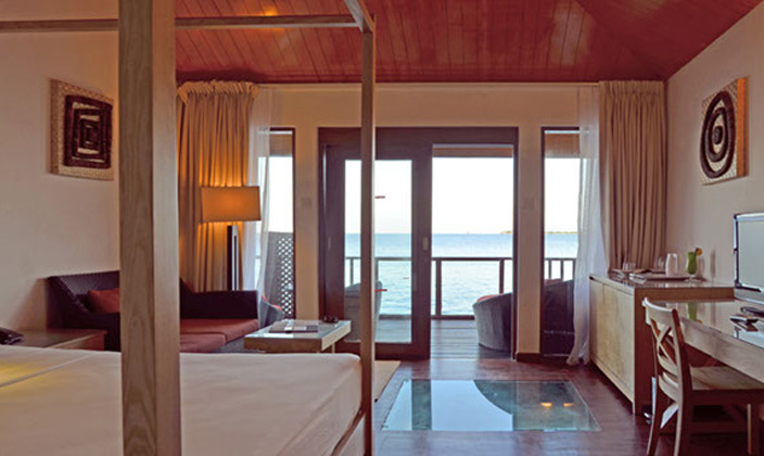 艾布度度假村水上屋也主打自然舒適的風(fēng)格,房間清新不做作,會(huì)給游客賓至如歸的感覺(jué)。水屋有玻璃地板,方便欣賞海底的生物以及色彩斑斕的珊瑚,但是不建議兒童居住。