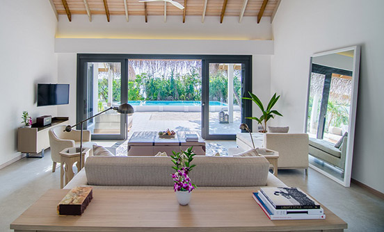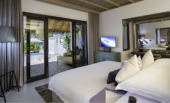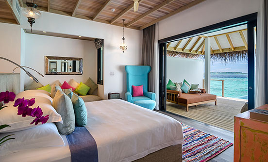 180sqm水上別墅的靈感來(lái)自法國(guó)里維埃拉的鮮艷色彩,可直接進(jìn)入海洋,有個(gè)6m長(zhǎng)的淡水游泳池以及設(shè)計(jì)獨(dú)特的家具和大型豪華的搖椅和一個(gè)私人陽(yáng)臺(tái)室外的沙發(fā)床。 享受40英寸平板電視的私人葡萄酒及迷你酒吧、大型戶(hù)外陽(yáng)臺(tái)配有躺椅和戶(hù)外淋浴,獨(dú)立衛(wèi)生間的海景浴缸和室內(nèi)淋浴而忽略了驚人的finolhu瀉湖和1.8公里長(zhǎng)的沙灘。