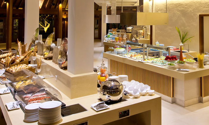 美食特色:法式、國(guó)際美食。Matheefaru 主餐廳供有精致的世界各國(guó)佳肴以及法式早中晚餐,在這里您可以欣賞到餐廳漂亮的裝飾品和震撼人心的日落美景。晚上,您可以盡情享受每周一次的主題自助餐,按菜單點(diǎn)菜,現(xiàn)場(chǎng)烹飪。餐廳還配備兩座水上私人亭子,可坐擁美景與美食,享受私密空間。