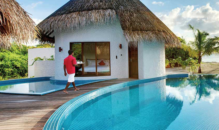 海灘套房沿神仙珊瑚島白沙海岸分散分布。臥室有法式落地窗,環(huán)境寬敞舒適,設(shè)有獨(dú)立衣帽間。躺在開(kāi)放式房間里閱讀放松,或在室外按摩泳池內(nèi)洗個(gè)澡?;蛟S您還想試一下馬爾代夫吊床涼椅,體驗(yàn)無(wú)盡的樂(lè)趣。