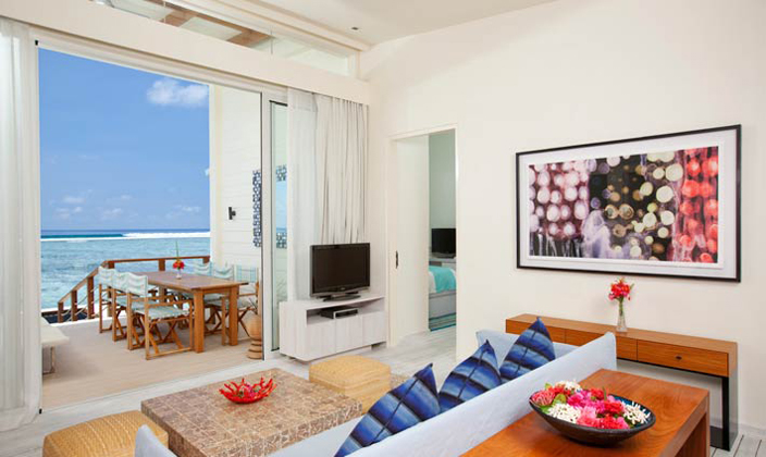 在康杜瑪島引人驚嘆的水上樓閣中一覽無余地欣賞日出日落、海洋與天空。這一兩臥室房型帶有寬敞的室內(nèi)、外生活空間,面積達(dá)170平米,是家庭度假的完美之選。