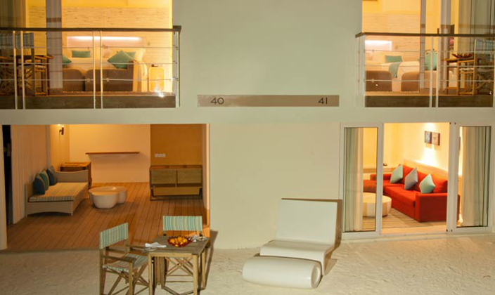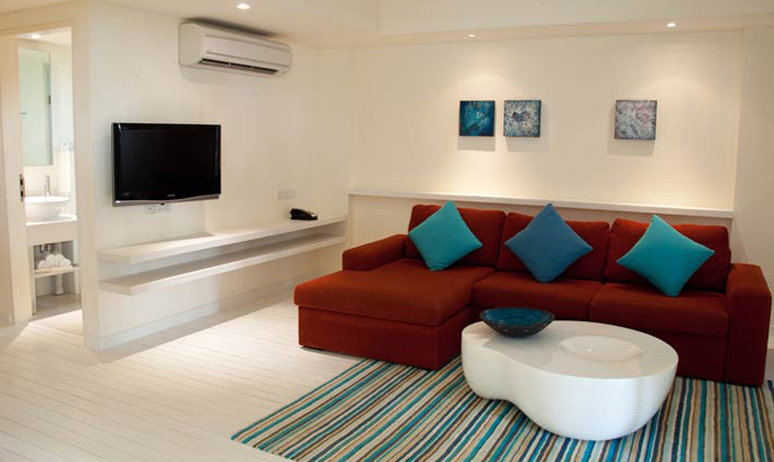 家庭海濱別墅是全家度假或小型團(tuán)體潛水愛好者的理想之選,面積是海濱別墅的兩倍。臥室位于樓上,而起居與餐飲區(qū)則在樓下。
