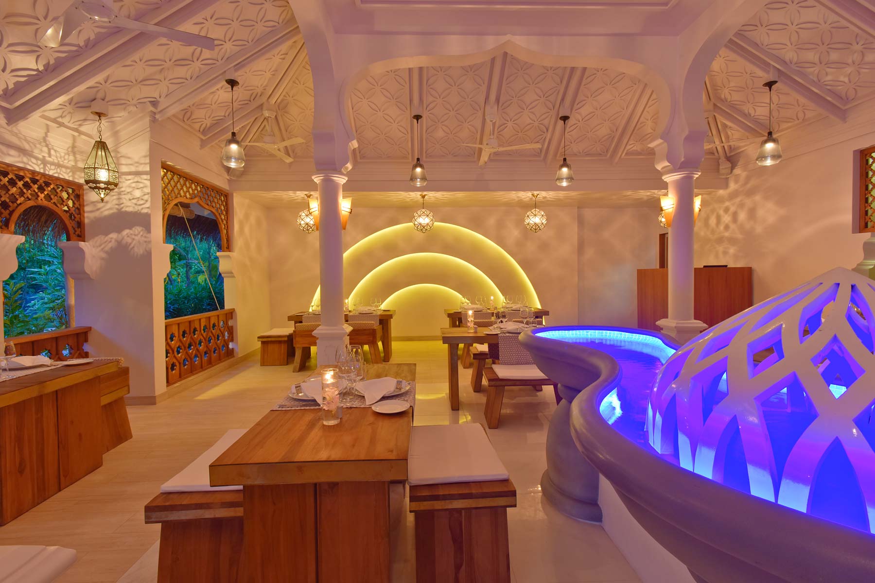 美食特色:馬爾代夫美食。The reef位于島上延伸出來的狹窄沙灘上,是該度假村最佳的海鮮餐廳,供應(yīng)馬爾代夫當(dāng)?shù)刈钚迈r的海鮮和進(jìn)口海鮮,按照您喜歡的口味,在您面前為您做出做滿意的海鮮晚餐!