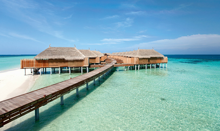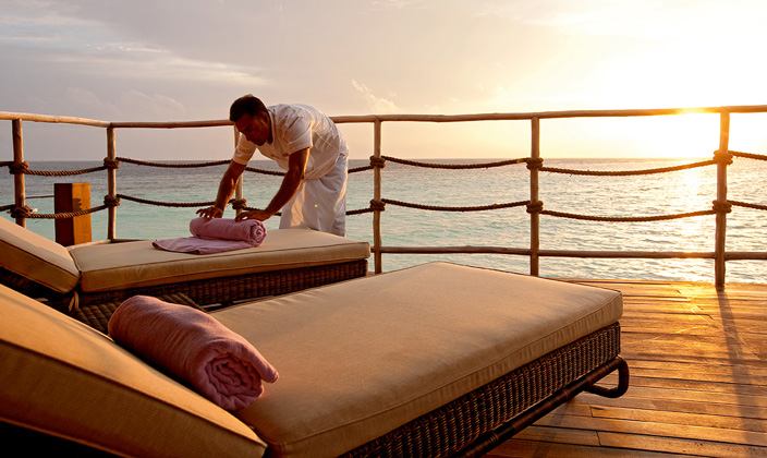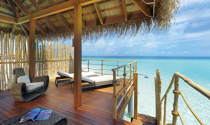 慕芙士島水上別墅配有名家設(shè)計的獨特家具使房間顯得更為精致,為客人提供了一個豪華而便利的住宿環(huán)境。您將會被這里最熱情周道的服務(wù)而動容。這里設(shè)施齊全,配備了一個木制陽臺,讓您可以在潛完水后,有一個休息和欣賞美景的好去處。