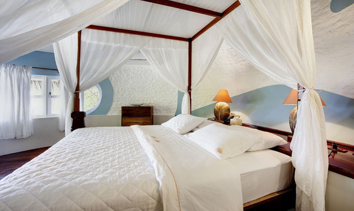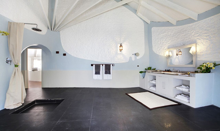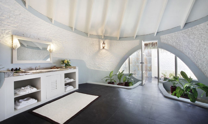 由臥室,客廳,浴室組成,浴室是設(shè)置在花園中的,其原始設(shè)計(jì)由意大利建筑師所創(chuàng)造,客廳可通往私人海灘,海灘上有沙灘休閑區(qū),桌椅和太陽(yáng)傘,在平房?jī)?nèi)還有露天淋浴設(shè)施,帶給客人舒適,方便的享受。