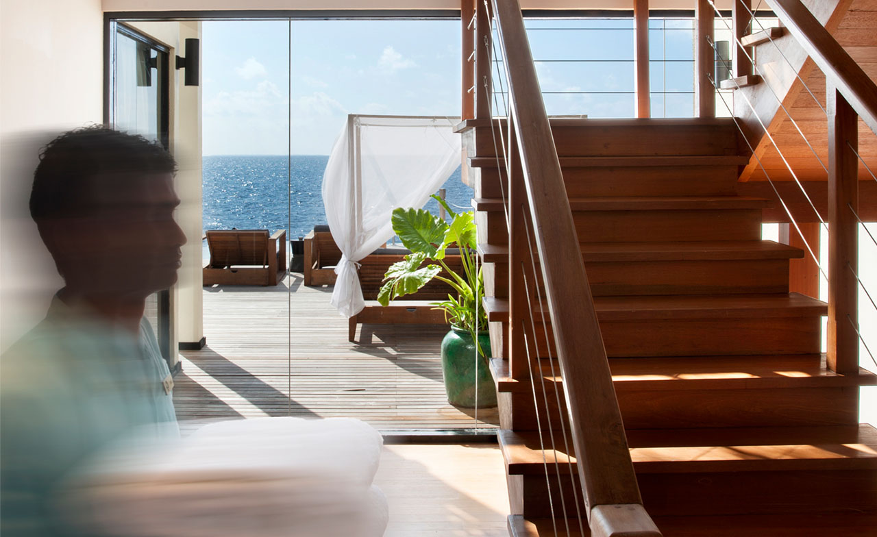 從海洋泳池別墅可以直接進(jìn)入瀉湖原始水域,在5.2米的無邊泳池、戶外甲板或遮陰的日光躺椅你可以欣賞到驚人的印度洋景觀,落地窗休息讓你不會錯過陽光下的任何一刻的風(fēng)景??腿丝梢詮呐P室或?qū)挸ǖ奶梢涡菹^(qū)進(jìn)入戶外甲板。