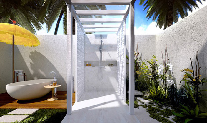 沙灘別墅面積超大,房間將采用明快的色調(diào)裝飾,每一個(gè)別墅都有一個(gè)大型的戶外甲板和一個(gè)熱帶花園以及一個(gè)寬敞的室外浴室,有一個(gè)手工制作的浴缸和一個(gè)淋浴房。