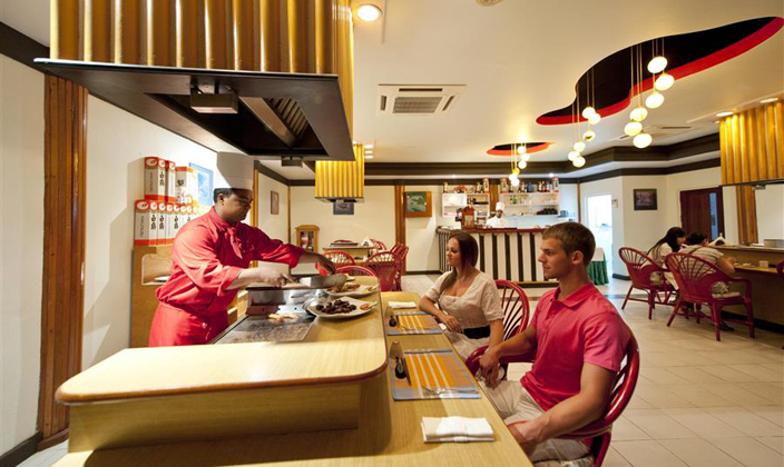 美食特色:日本美食。餐廳介紹:島上的日式餐廳,餐廳裝飾的有小橋、池塘、瀑布等,裝飾華麗的餐廳,展示了傳統(tǒng)正宗的日本美食,廚師可能會雜耍,訓練有素的廚師,從日本進口的日本料理食物。