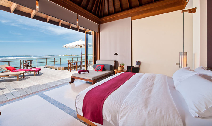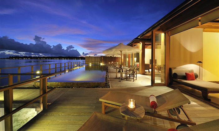 海上別墅套房位于礁湖邊上,提供了無可企及的享受。將最美麗的海景攬入眼中,寶石藍色的礁湖和大海就在您的窗外。您還可以盡情享受您的私人泳池。