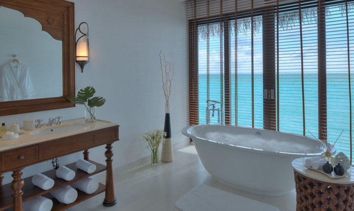 舉目便是引人入勝的寧靜海洋,溫柔的海浪拍打在別墅門口。入住單臥房水上別墅的住客亦可直接從別墅的甲板滑入專屬于自己的私人跳水區(qū)擁抱這片清澈湛藍的海水。
