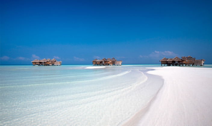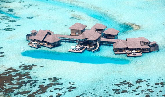 全島只有45間水屋,房間面積大,超過(guò)210平方。擁有玻璃地板SPA與360度環(huán)繞海景餐廳,可在客房用餐。