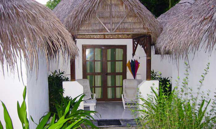 原始海島風(fēng)格,房子呈六邊形,屋頂有厚厚的茅草,房間里的所有家具都是用竹子和藤木做的,非常自然,電器及設(shè)施比較簡(jiǎn)單。豪華房前有陽(yáng)光躺椅,給忘卻時(shí)間的你一個(gè)休憩的場(chǎng)所。