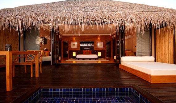 蜜月別墅,采用木質(zhì)地板和裝飾,配以多彩熱帶主題床品、傳統(tǒng)茅草屋頂,營(yíng)造出本土海灘居住格調(diào),是這里蜜月旅行的首選,絕對(duì)的私密讓你測(cè)底放松身心。觀看日落,享受冰鎮(zhèn)香檳,依偎在舒適的特大號(hào)床或在華麗的私人泳池盡情嬉戲。蜜月套房設(shè)有木地板和裝飾,搭配五彩斑斕的熱帶主題的床單和傳統(tǒng)風(fēng)格的茅草屋頂,給人一種強(qiáng)烈的傳統(tǒng)海灘住宅的感覺(jué)。