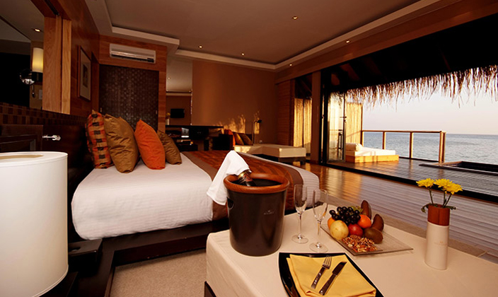 瓦度島是第一個(gè)將水上屋的概念引進(jìn)馬代的酒店,島上全是水屋,日式,法式風(fēng)格。含了三餐,性價(jià)比較高,有細(xì)白的尾沙灘。