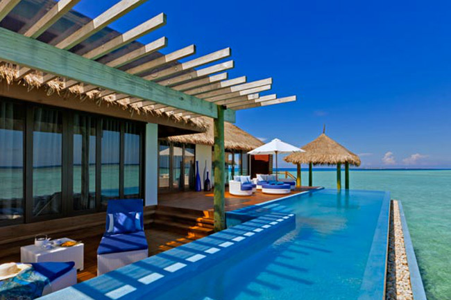 維拉沙露島,英文全名(Velassaru Maldives Laguna Beach),原被稱為拉古娜島,是馬爾代夫一座極其美麗的五星豪華度假島嶼,坐落于南馬累環(huán)礁內(nèi),東西長約350米,南北長約150米,繞島一周僅需20分鐘即可。游客在馬累國際機場落地后,就會在酒店工作人員的帶領(lǐng)下去機場碼頭乘坐酒店的私人快艇,前往馬累南面的維拉沙魯島,由島嶼后面的環(huán)礁缺口進(jìn)入,海水的顏色自深藍(lán)到淺藍(lán)而淺綠。大概35分鐘左右,即可踏上這種美麗的小島。在這藍(lán)天和陽光交織的地平線上,海天連成一線,碧綠的礁湖,形成美麗的熱帶景觀,就猶如一種“藍(lán)色的桃花源”,有著不食人間煙火的純凈感。旅客可以在這幽雅與休閑的氣息中,享受與世隔絕的度假方式。