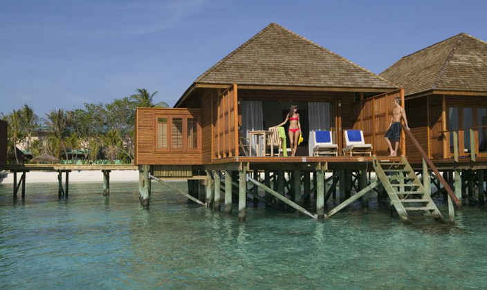坐落在維利甘度島沙灘對面的瀉湖之上,在這里你可以直接感受到大海的無窮魅力。有個(gè)半露天的靠窗浴缸,露臺(tái)上有直接下海的樓梯(這個(gè)就是water villa露天的浴缸,和Jecuzzi的區(qū)別.)。房內(nèi)設(shè)施齊全,裝潢得體,給人一種無窮的舒適感。
