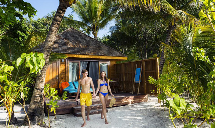沙灘別墅坐落在島上的熱帶植被之中,按摩浴缸沙灘別墅是相同的,只是比按摩浴缸沙灘別墅小,房間中的裝潢設(shè)計(jì)非常的自然和諧,給人一種安靜祥和的感覺,但是能觀賞到大海的角度有些狹窄。