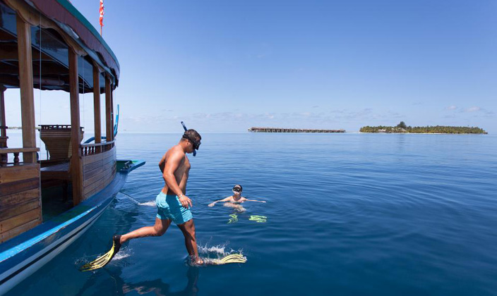 漫步于白色的沙灘上,看熱帶植物,聽海浪演奏的音樂,你可以融入于自然當(dāng)中,陽光,沙灘,海洋,‘魯濱遜漂流記'群島,大規(guī)模瀉湖。不同深度,不同色調(diào),令人眼花繚亂的水下珊瑚花園,完美的與自然結(jié)合,馬爾代夫維拉蔓豪島儼然是理想的熱帶度假勝地。