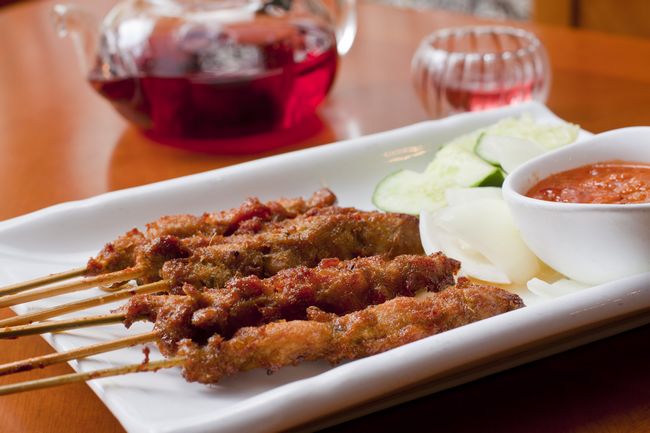 從裝飾精美有空調(diào)的賓館、飯店到喧鬧的咖啡店、平民菜館;從市場里的小吃店到街邊小攤,應(yīng)有盡有。沙嗲是最受歡迎的馬來食物,它是將切塊并鹵上香料的牛肉、羊肉、雞肉用細竹簽串起來到炭火上烘烤而成的食品,咝咝作響的沙嗲配以濃香的花生醬、生洋蔥、小黃瓜和米糕一起吃。沙嗲被稱為馬來西亞民間的“國萊”??о?、椰漿飯、油飯、番茄飯、咖喱牛肉、咖喱雞、怡保面食??以米飯為主食的馬來飯菜,以辛辣和咖喱味而著稱。