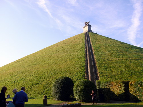 在距滑鐵盧城鎮(zhèn)以南2.5公里的地方就是著名的滑鐵盧古戰(zhàn)場(chǎng),雖然它現(xiàn)在是比利時(shí)最重要的旅游景區(qū),但并未隨意開(kāi)發(fā)。現(xiàn)在的古戰(zhàn)場(chǎng)除了有幾座規(guī)模很小的紀(jì)念館之外,沒(méi)有興建任何民用或公用設(shè)施,與180多年前幾乎沒(méi)什么兩樣。所不同的只是在位于古戰(zhàn)場(chǎng)偏南的地方多了一座金字塔式的小土山。這座小山既是古戰(zhàn)場(chǎng)的標(biāo)志,也是觀景臺(tái),站在山頂?shù)钠脚_(tái)上可以縱覽滑鐵盧戰(zhàn)場(chǎng)的全局。