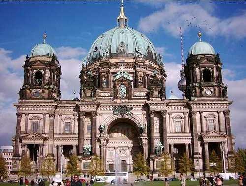 德國柏林市中部博物館島的東端。曾是德意志帝國霍亨索倫王朝(Haus Hohenzollern)的宮廷教堂。遠眺博物館島可以看到宏偉的建于1905年的新文藝復興建筑柏林大教堂(Berlin Dom),它以前曾是霍亨索倫皇族的宮廷教堂,其家族成員都埋葬在這里的地下室中。教堂內部修飾富麗豪華,于同一時期由同樣的建筑家Raschdorff設計。其中最創(chuàng)珍貴的是大選帝侯及夫人Dorothea,弗里德里希國王一世及王后索菲·夏洛滕的棺材價值連城。主圣壇是1850年F·A·Stüler的作品。美術館非常值得一看,風景獨特。每天下午3點可以欣賞免費的管風琴演奏。