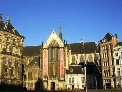 達(dá)姆廣場(chǎng)的西南側(cè)是晚期歌特式的新教堂,其實(shí)也是15世紀(jì)的建筑。新教堂由于1815年以來(lái)荷蘭的歷代國(guó)王和女王都在此舉行加冕儀式而聞名。1980年現(xiàn)任女王貝婭特麗克絲即在此即位?,F(xiàn)任荷蘭王儲(chǔ)亞歷山大在此與阿根廷姑娘索雷吉耶舉行了隆重的婚禮,并在阿姆斯特丹股票交易所舉辦婚宴,最后登上王宮的陽(yáng)臺(tái)上接受民眾歡呼。