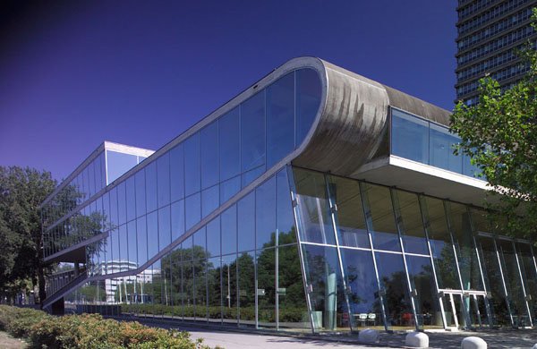 這座建筑以三個(gè)獨(dú)立的區(qū)域容納了協(xié)會(huì)的主要功能,檔案、展覽和員工,每個(gè)區(qū)域都有自己獨(dú)特的建筑特色以及與周?chē)h(huán)境的聯(lián)系。從建筑角度來(lái)說(shuō),這棟建筑物明確融合了周?chē)默F(xiàn)有建筑。封閉式的弧形檔案大樓將安靜的公園與忙碌的街道分隔開(kāi)??梢詮墓袄冗M(jìn)入博物館,拱廊在夜晚由Peter Struycken的燈光雕塑提供照明。第二個(gè)入口在博物館公園一側(cè),可以穿過(guò)一座小橋到達(dá)。兩個(gè)入口都與大堂相連,而大堂成為了博物館公園通道的一部分。