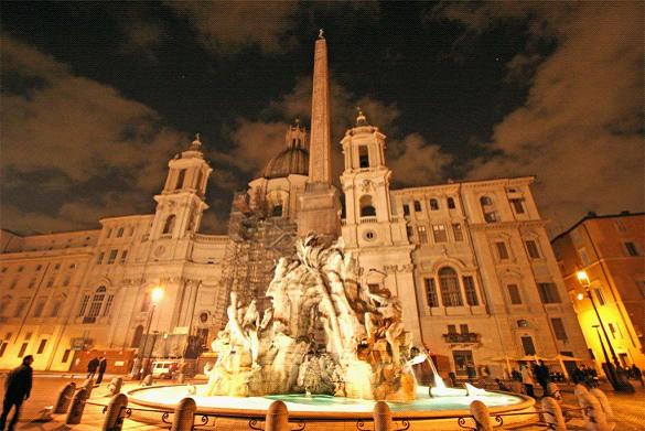 羅馬最美麗的廣場(chǎng)。無(wú)論時(shí)白天,還是晚上,它都是一塊吸引游客的天然磁鐵,同時(shí)也是人們花上個(gè)把小時(shí)讓自己置身于眾多咖啡館之一,同時(shí)觀賞過往人群的理想場(chǎng)所。廣場(chǎng)的輪廓是一個(gè)寬闊的橢圓形,正好與阿戈納利斯競(jìng)技場(chǎng)的形狀相配—廣場(chǎng)的名稱就源于該競(jìng)技場(chǎng)—擁有30,000個(gè)座位的大型運(yùn)動(dòng)場(chǎng),由圖密善皇帝于公園86年建成。