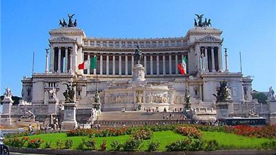 維克多·埃曼紐爾二世紀念堂:坐南朝北俯視著廣場,是威尼斯廣場上最醒目的建筑,即使在羅馬這樣充滿宏偉建筑的城市,也算是相當(dāng)巨大的工程了。因為造型和顏色的關(guān)系,紀念堂被戲稱為“結(jié)婚蛋糕”或“打字機”。這座白色