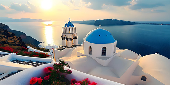 (伊亞日落)自由漫步圣托里尼島(特別安排,自由活動),自由享受希臘海島的浪漫風情.自行前往火山斷崖伊亞,捕捉經典的白色小教堂映襯藍色愛琴海的唯美景致和最浪漫的“日落愛琴海”;