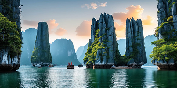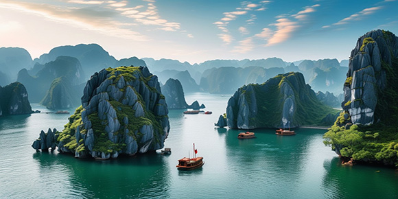 ※【下龍灣】下龍灣是越南北方廣寧省的一個海灣,風(fēng)光秀麗迷人,聞名遐邇。風(fēng)景區(qū)共分為東、西、南3個小灣。因其景色酷似中國的桂林山水,因此被稱為“海上桂林”1994年,聯(lián)合國教科文組織將下龍灣作為自然遺產(chǎn),列入《世界遺產(chǎn)名錄》。下龍灣各小島嶼典型的形式為伸出海面的鋸齒狀石灰?guī)r柱,還有一些洞穴和洞窟,共同形成一幅異國風(fēng)味的如畫景致。水域和熱帶森林中可見各種不同的海生及陸生哺乳動物、鱷、魚類和鳥類。