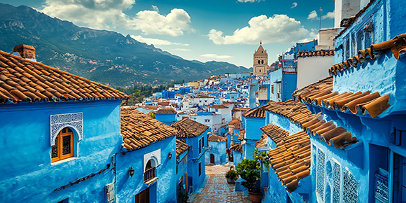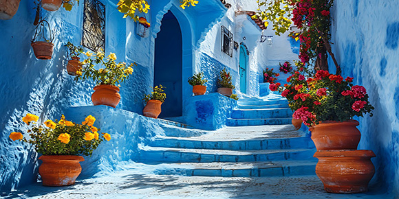 ? 藍色小鎮(zhèn)—舍夫沙萬:以其古老的傳統(tǒng)藍色建筑風貌而聞名于世。舍夫沙萬建在山坡上,周圍山谷連綿起伏,藍色的小鎮(zhèn)就像一顆藍寶石一樣鑲嵌在這里,異常的光彩奪目,曾有一種說法,說是全球有三大著名的藍城,它們是希臘的圣托里尼、摩洛哥的舍夫沙萬和印度的焦特普爾