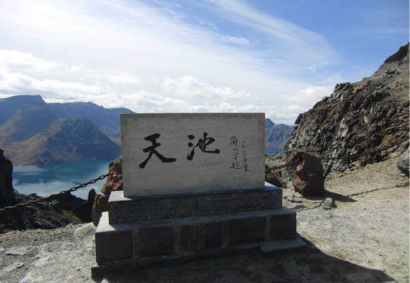 東北的少數(shù)部族會(huì)把長(zhǎng)白山作為“薦瑞凝祥、列祖龍興”的象征,敬畏有加?!丁渡胶=?jīng)》中說(shuō)到長(zhǎng)白山:“大荒之中,有山,名曰不咸”,“不咸”意即“有神的山”。神山、圣水把長(zhǎng)白山天池描摹的猶如人間天堂。藍(lán)天上白云飄過(guò),白云的倒影在湖面上隨風(fēng)輕輕地飄蕩著,從這一邊到那一邊,輕風(fēng)起處,波痕淡淡化開,寬闊的湖面漸漸歸于平靜。四周的山巖裸露著一種鐵黃色,似乎就是當(dāng)年火山噴發(fā)燒過(guò)的痕跡。據(jù)了解,長(zhǎng)白山作為休眠火山曾經(jīng)有過(guò)三次噴發(fā),最近的一次是在1702年,距今僅有三百多年。坐在天池邊上,望著泛著深藍(lán)色的湖水被周圍16座山峰掬捧著,心似乎已沉落到無(wú)盡的湖底。 突然想起,來(lái)時(shí)路上提到的與長(zhǎng)白山的緣分。這就是我期待的不期而遇,或者說(shuō)有緣相見?一時(shí)愣住了,望著天池平靜的湖水,四周淡定的群山,天上飄過(guò)的祥云,一幅“水光瀲滟晴方好”的天池美景。禁不住問(wèn)自己:“就是這樣簡(jiǎn)單?”于是在心中輕輕地描摹著云遮霧擋、雨前風(fēng)后的天池景象,想象著如果趕上雨霧天氣上山會(huì)是怎樣一番情景?四周云霧飄蕩,雨水迷住雙眼,腳下濕滑無(wú)根,猶如游蕩在云間、不知方向的凡人。長(zhǎng)白云遮天池水,原本就飄忽不定的長(zhǎng)白山云終日在天池水邊游蕩,為天池增添了無(wú)窮的神秘,云霧彌漫的長(zhǎng)白云不時(shí)遮住天池中的一泓秀水,會(huì)讓人在遺憾中生出無(wú)盡的遐想,于是這天池中也伴生出異形的怪獸。每當(dāng)云霧洞開,天池展現(xiàn)容顏的時(shí)候,人們會(huì)興奮地圍攏在山頂,貪婪地注視著水中每一點(diǎn)變化,或是波紋,或是水色,在自己的頭腦中幻化出屬于自己的構(gòu)圖,或許正是長(zhǎng)白山天池的難得一見而生發(fā)出無(wú)盡的猜測(cè)。這就是我們所認(rèn)定的那種緣嗎?平靜無(wú)波的天池水積聚在山圍成的盆中,誰(shuí)會(huì)想到,平靜的水面下,最深處會(huì)達(dá)數(shù)百米。這才讓我們理解什么是深沉,而深沉之下連接的是地下滾動(dòng)著的火焰。說(shuō)不定的一天,這火焰會(huì)從鏡一般的水面噴薄而出。