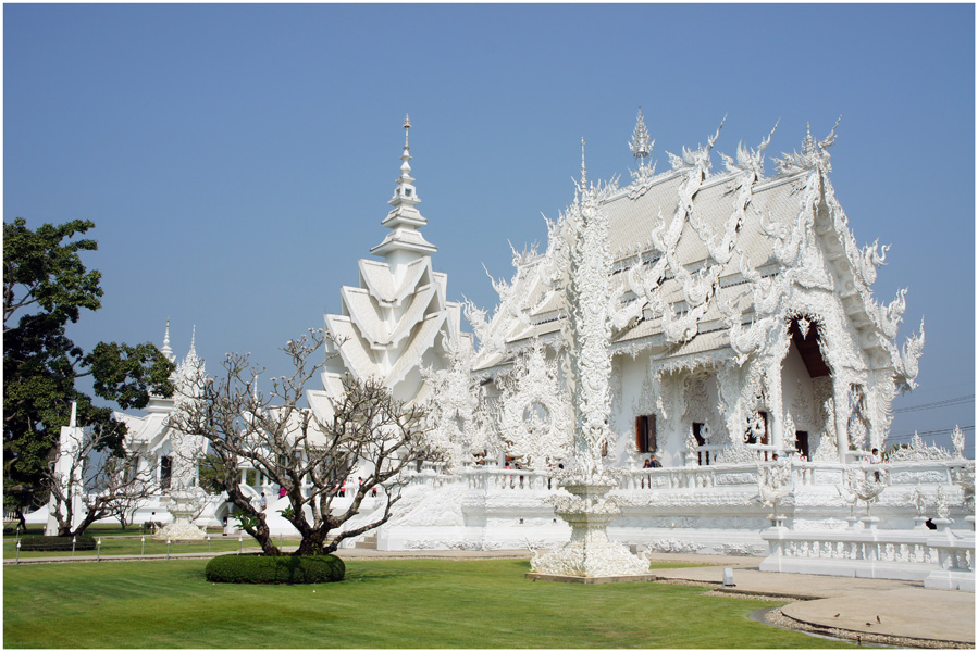 為什么要選擇到清菜這個(gè)地方去,其實(shí)還是有著一點(diǎn)淵源,清菜是一個(gè)位于泰國(guó)最北邊的小城市,經(jīng)歷了職場(chǎng)的勞累,很想到一個(gè)安靜而又會(huì)有所解放的場(chǎng)所,而清菜有一個(gè)地方深深的吸引了我。他就是清菜的白廟。這其實(shí)也就是一座普通的寺廟,說(shuō)實(shí)話呢,在泰國(guó)最常見(jiàn)的就是寺廟,泰國(guó)的佛教文化有著很悠久的歷史傳承,在這里見(jiàn)到寺廟可以說(shuō)就猶如在