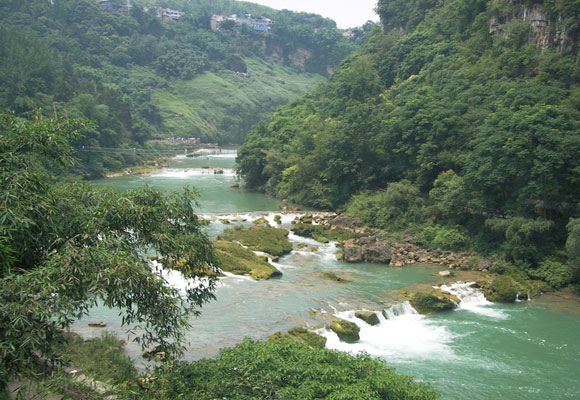 這天的安排是去天河潭。一覺睡到自然醒,早餐過后,打的去河濱公園的汽車站,坐211路公交車。很奇怪貴陽沒有直接去天河潭的大巴,211路20分鐘一班,我們排隊(duì)等座位,帶著小孩一定要有座位的,否則肯定吃不消。到天河潭總共28站,1個(gè)多小時(shí),道路不是很好,灰塵滿天飛。終于到達(dá)天河潭,整車的人都?xì)g呼雀躍,簡直回到了學(xué)生時(shí)代的春游。